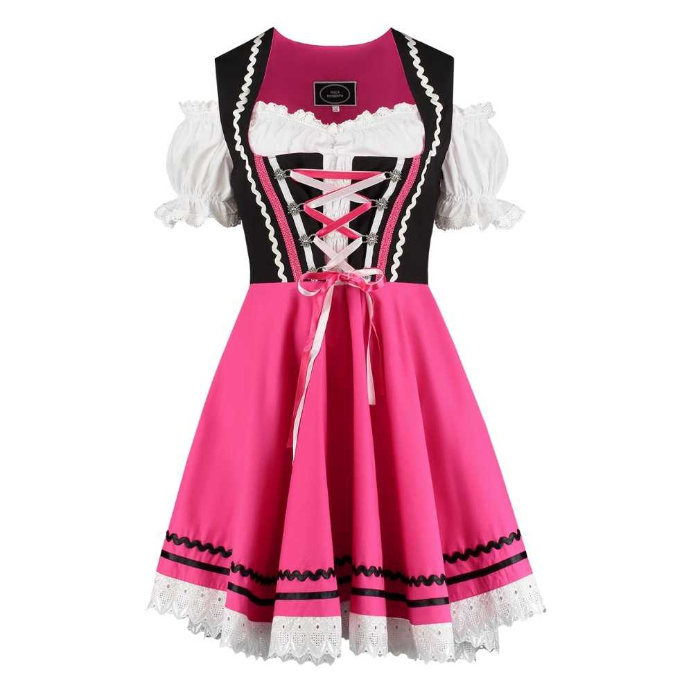 Den fine sorte og pink Dirndl lukkes med lynlås i siden.