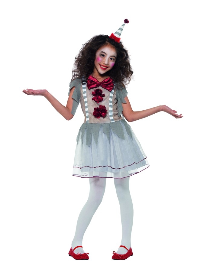 - så hvorfor ikke kombinere de to i dette spøgelses klovne kostume til årets Halloween. Kostumet består af en kjole og hårbånd med en klovnehat på. Vær kreativ med en vild klovne makeup og styr se